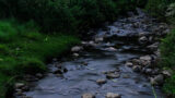 渓流沿いを飛び交う蛍の光と緑豊かな自然の風景
