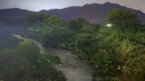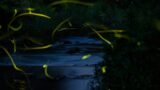渓流沿いを飛び交う蛍の光と緑豊かな自然の風景